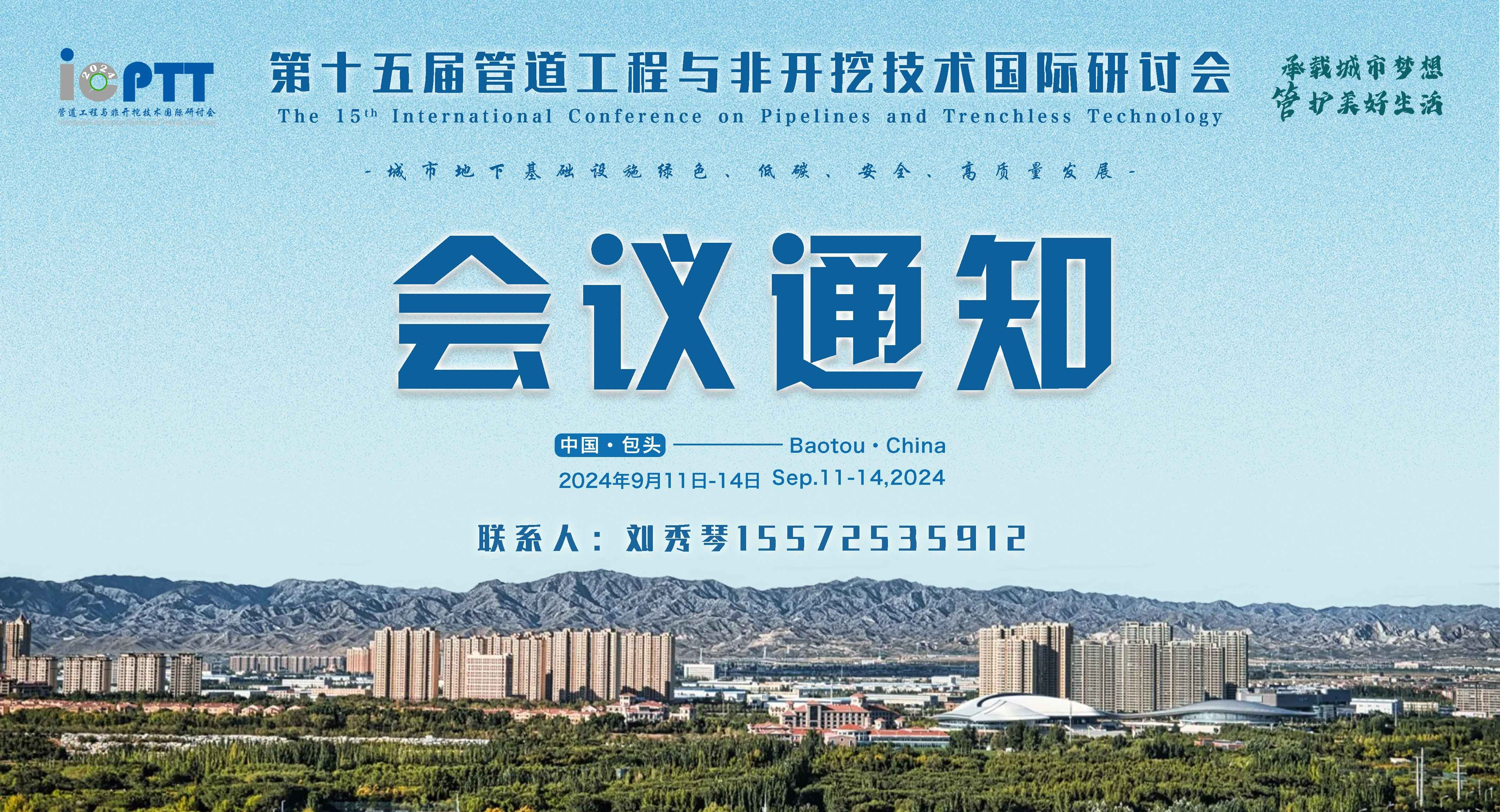 關(guān)于召開“第十五屆管道工程與非開挖技術(shù)國際研討會(huì)(ICPTT2024)”的通知 各有關(guān)單位: 為了持續(xù)更好地推動(dòng)管道工程和非開挖技術(shù)領(lǐng)域創(chuàng)新性科研成果、新技術(shù)和先進(jìn)工程經(jīng)驗(yàn)的探討、交流和復(fù)雜問題的協(xié)同研究,促進(jìn)管道與非開挖工程領(lǐng)域政、產(chǎn)、學(xué)、研、用的共同進(jìn)步,快速提高管道建設(shè)水平,服務(wù)于我國城市地下管線基礎(chǔ)設(shè)施建設(shè)與更新改造,中山大學(xué)、內(nèi)蒙古科技大學(xué)、同濟(jì)大學(xué)、鄭州大學(xué)、中國地質(zhì)大學(xué)(武漢)、長江生態(tài)環(huán)保集團(tuán)有限公司、壩道工程醫(yī)院等單位將于2024年9月11-14日在中國包頭市共同組織