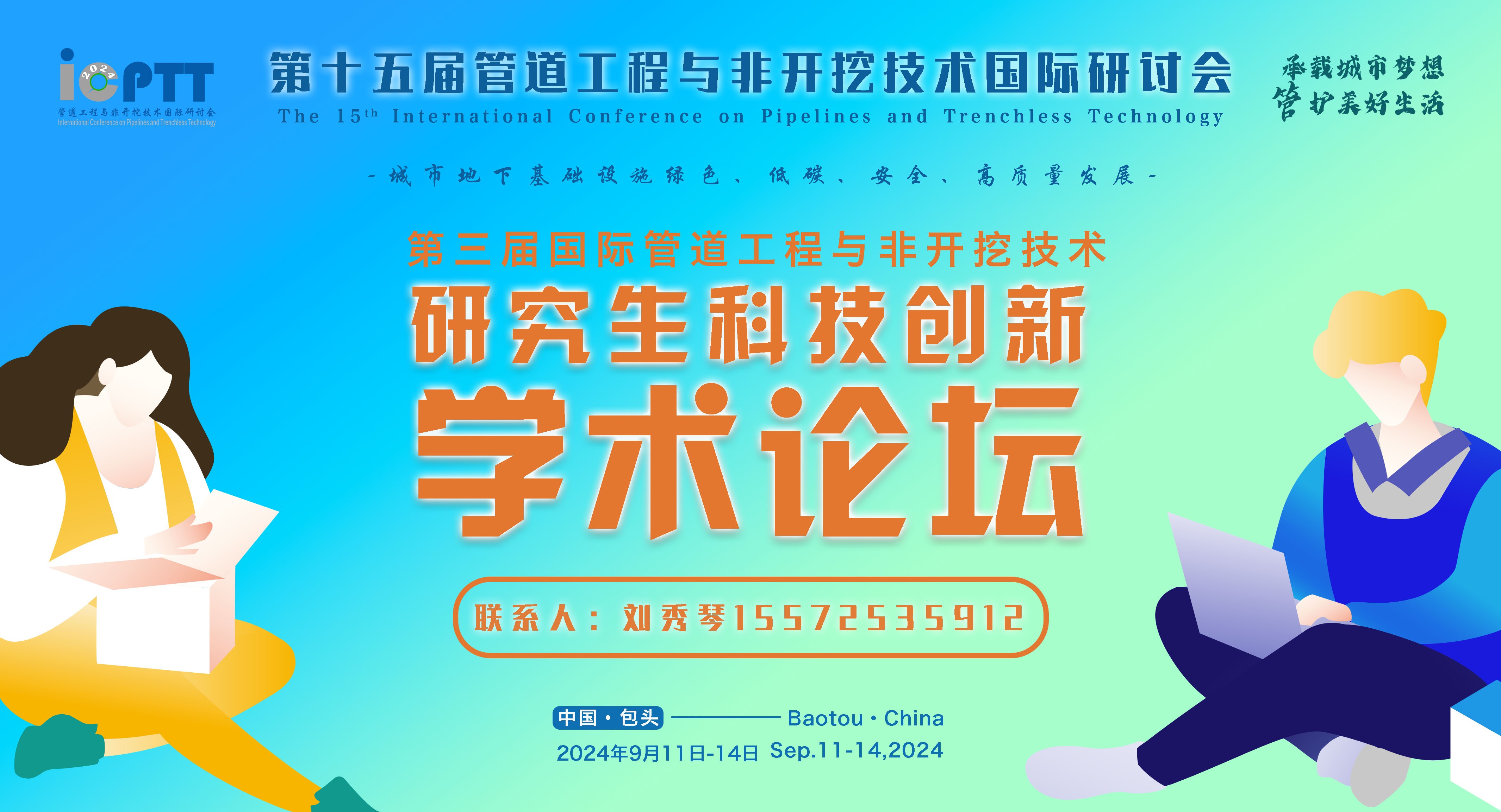 ?關(guān)于舉辦第三屆國際管道工程與非開挖技術(shù)研究生科技創(chuàng)新學(xué)術(shù)論壇的通知 ? ? ? ? ? 為了持續(xù)更好地推動(dòng)管道工程和非開挖技術(shù)領(lǐng)域創(chuàng)新性科研成果、新技術(shù)和先進(jìn)工程經(jīng)驗(yàn)的探討、交流和復(fù)雜問題的協(xié)同研究,促進(jìn)管道與非開挖工程領(lǐng)域政、產(chǎn)、學(xué)、研、用的共同進(jìn)步,快速提高管道建設(shè)水平,服務(wù)于我國城市地下管線基礎(chǔ)設(shè)施建設(shè)與更新改造,中山大學(xué)、內(nèi)蒙古科技大學(xué)、同濟(jì)大學(xué)、鄭州大學(xué)、長江生態(tài)環(huán)保集團(tuán)有限公司、壩道工程醫(yī)院等單位將于2024年9月11-14日在中國包頭市共同組織召開“第十五屆管道工程與非開挖技術(shù)國際研討會(huì)(ICPTT 2024)”。 ? ? ? 為鼓勵(lì)和促進(jìn)研究生科技創(chuàng)新